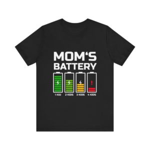 Funny Mom’s battery t-shirt – gift for Mother’s day or birthday, Mum joke present – Mom’s battery parenting tee, dark black